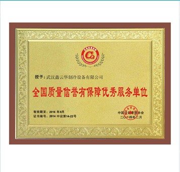 鑫云華制冷榮獲全國質量信譽